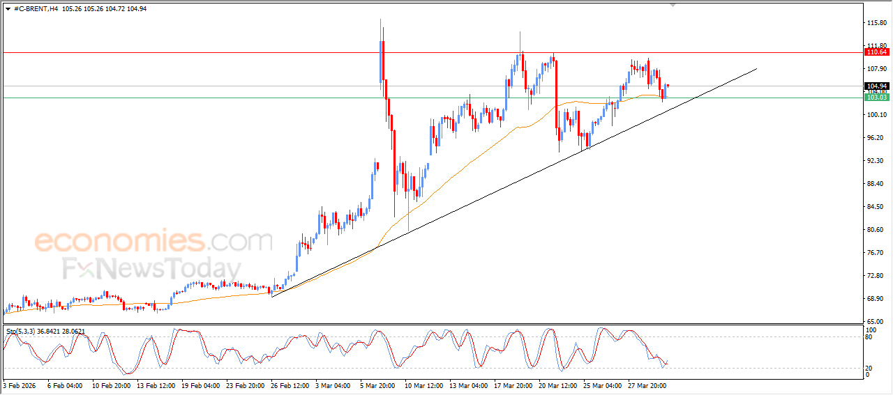 O petróleo Brent subiu durante o pregão recente após se recuperar do suporte na EMA50. Isso lhe deu impulso positivo, ajudando a alcançar esses ganhos em meio à dominância da principal tendência de alta de curto prazo, à medida que o preço se move ao longo de uma linha de tendência de suporte. Além disso, sinais positivos começam a aparecer nos indicadores de força relativa após atingir níveis de sobrevenda acentuados, dando ao preço mais espaço para obter novos ganhos no curto prazo.