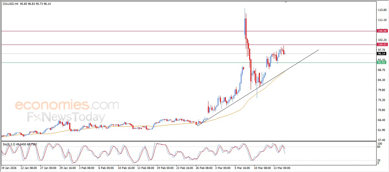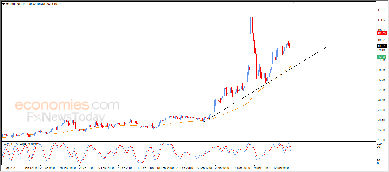 O preço do petróleo bruto caiu em suas últimas negociações intradiárias, afetado pela estabilidade do principal nível de resistência psicológica em US$ 100,00. Com o surgimento de sinais negativos dos indicadores de força relativa após atingir níveis de sobrecompra, a tentativa de se livrar dessa condição de sobrecompra e ganhar impulso de alta pode ajudar a romper essa resistência, aproveitando a dominância da principal tendência de alta no curto prazo e sua negociação ao longo de uma linha de tendência de suporte para esse caminho.