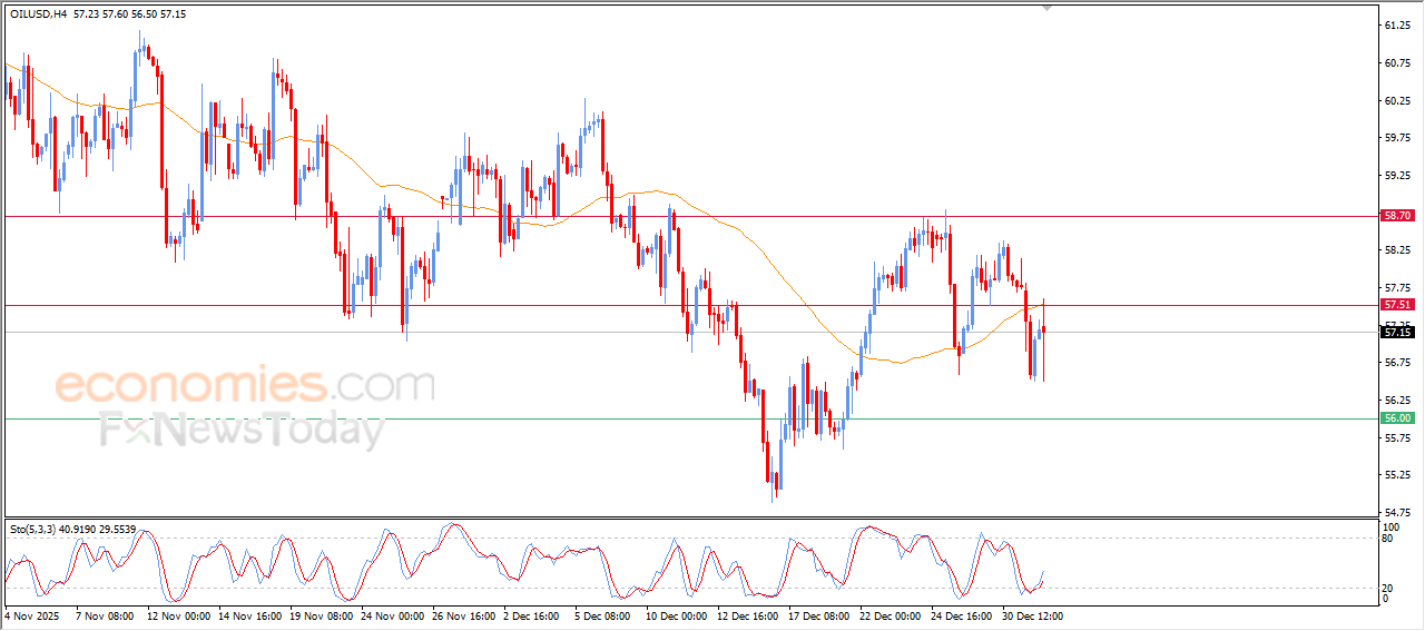 Por outro lado, o preço está tentando se livrar da pressão negativa proveniente da EMA50, que representa um obstáculo temporário à extensão da alta, preferindo entrar em uma faixa de flutuação intradiária antes de definir sua tendência nas próximas negociações.