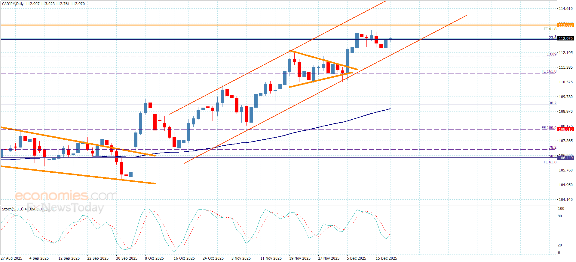O par CAD/JPY encerrou a última recuperação corretiva com um novo fechamento de alta acima do suporte do canal principal de alta em 112,15, formando ondas de alta devido à sua estabilidade perto de 113,00.