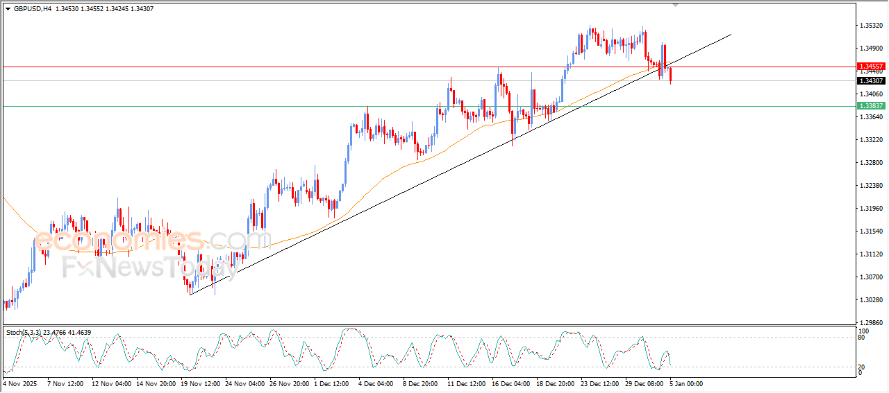 O par GBP/USD recuou em suas últimas negociações intradiárias, rompendo a principal linha de tendência de alta no curto prazo, o que o colocou sob pressão negativa. Essa pressão se intensificou ao ultrapassar o suporte da EMA50, reforçando a probabilidade de novas perdas no curto prazo, com o surgimento de sinais negativos dos indicadores de força relativa, após a recuperação de suas condições de sobrevenda.