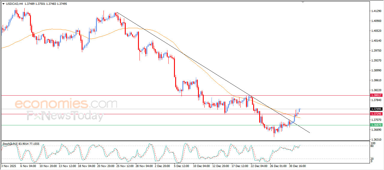 O preço do USDCAD subiu em uma faixa estreita em suas últimas negociações intradiárias, após romper a principal linha de tendência de baixa no curto prazo, ganhando impulso de alta que o ajudou a se livrar da pressão negativa da EMA50, abrindo caminho para atingir novos níveis de resistência no curto prazo, especialmente com o surgimento de sinais positivos nos indicadores de força relativa, apesar de ter atingido níveis de sobrecompra.