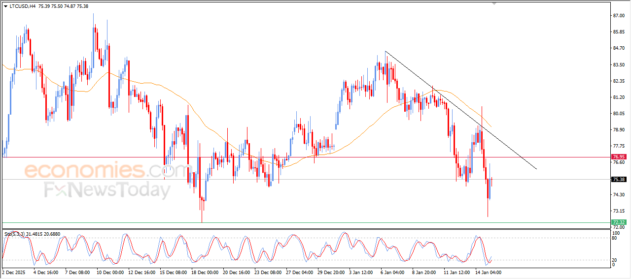 O preço do Litecoin (LTCUSD) apresentou estabilidade em suas últimas negociações intradiárias, enquanto tenta recuperar parte das perdas anteriores e reverter as condições de sobrevenda no RSI, especialmente com o início de sinais positivos. No entanto, o preço permanece sob pressão negativa contínua devido à negociação abaixo da média móvel simples de 50 períodos (SMA50), o que limita as perspectivas de recuperação no curto prazo, principalmente devido à dominância da tendência principal de baixa, com a ação do preço se movendo ao longo de uma linha de tendência secundária de curto prazo.