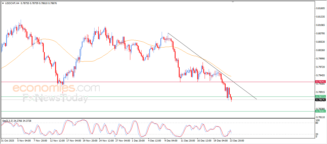 O preço do USDCAD continuou a queda em suas últimas negociações intradiárias, rompendo o suporte de 1,3685, que representa nossa meta esperada em nossa análise anterior, em meio à continuidade da pressão negativa devido à sua negociação abaixo da EMA50, reforçando a estabilidade e o domínio da principal tendência de baixa no curto prazo, especialmente com sua negociação paralela à linha de tendência, além do surgimento de sinais negativos nos indicadores de força relativa, apesar de sua estabilidade em níveis de sobrevenda.