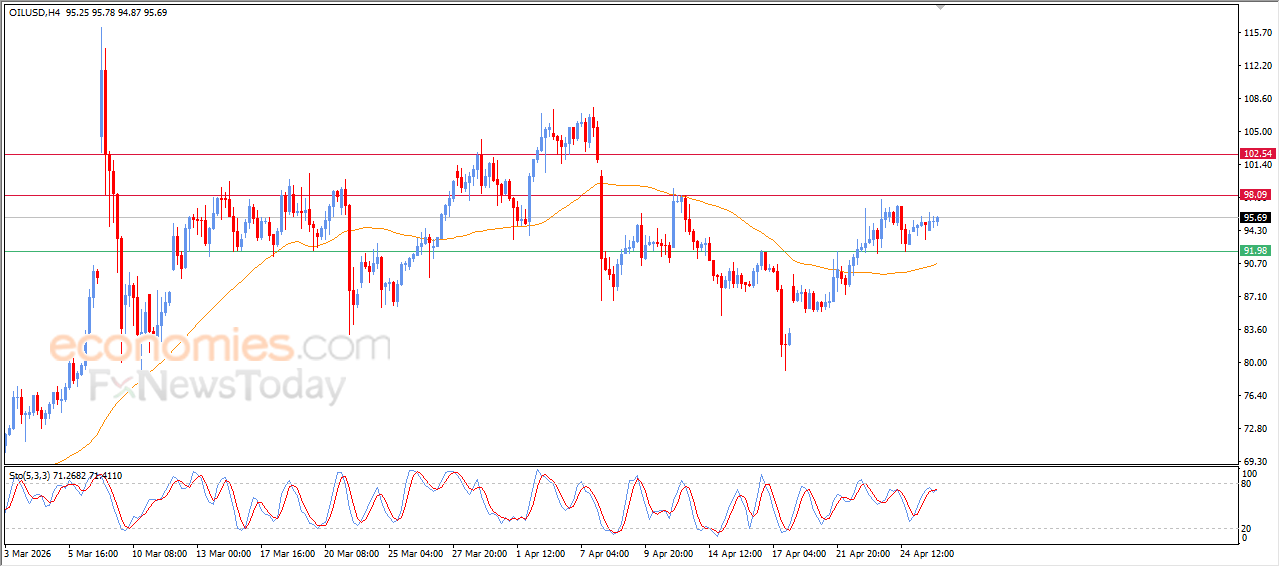 Essa alta ocorre em paralelo a uma tentativa de aliviar a condição de sobrevenda nos indicadores de força relativa, especialmente com o surgimento de um cruzamento positivo. No entanto, a perspectiva de baixa permanece, visto que o preço continua afetado pela quebra de uma importante linha de tendência ascendente de curto prazo, além da continuidade da negociação abaixo da EMA50, o que aumenta as probabilidades de retorno da pressão vendedora e retomada dos movimentos de queda no pregão de curto prazo.