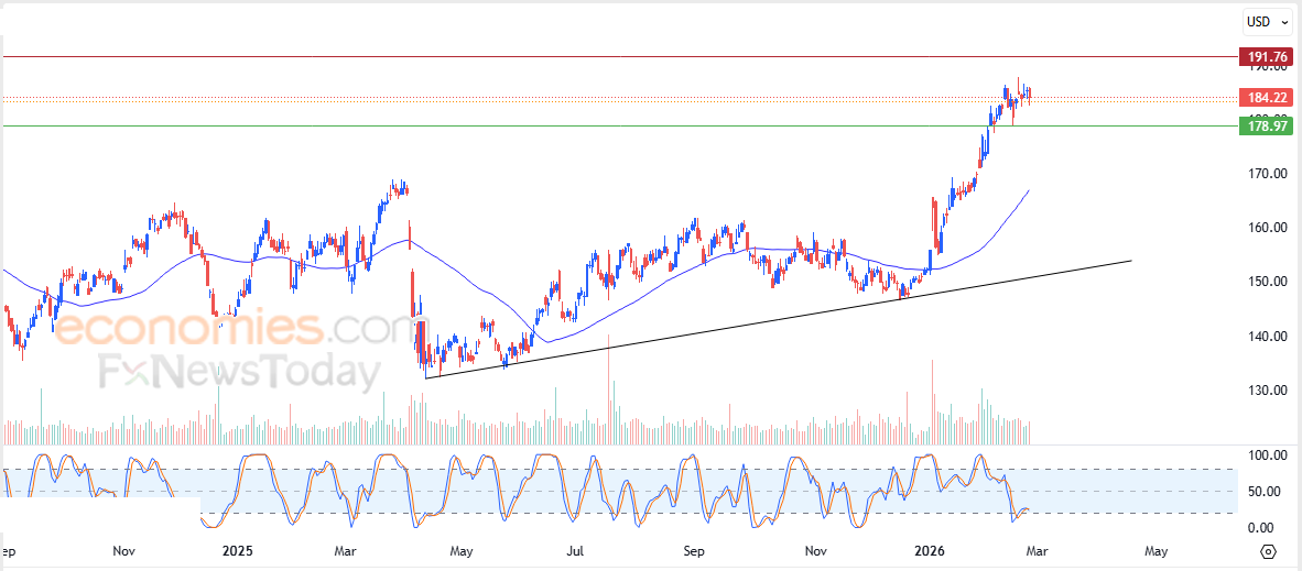 Portanto, esperamos que o preço das ações suba durante as próximas sessões de negociação, desde que o suporte em US$ 179,00 permaneça intacto, visando o próximo nível de resistência em US$ 192,00.