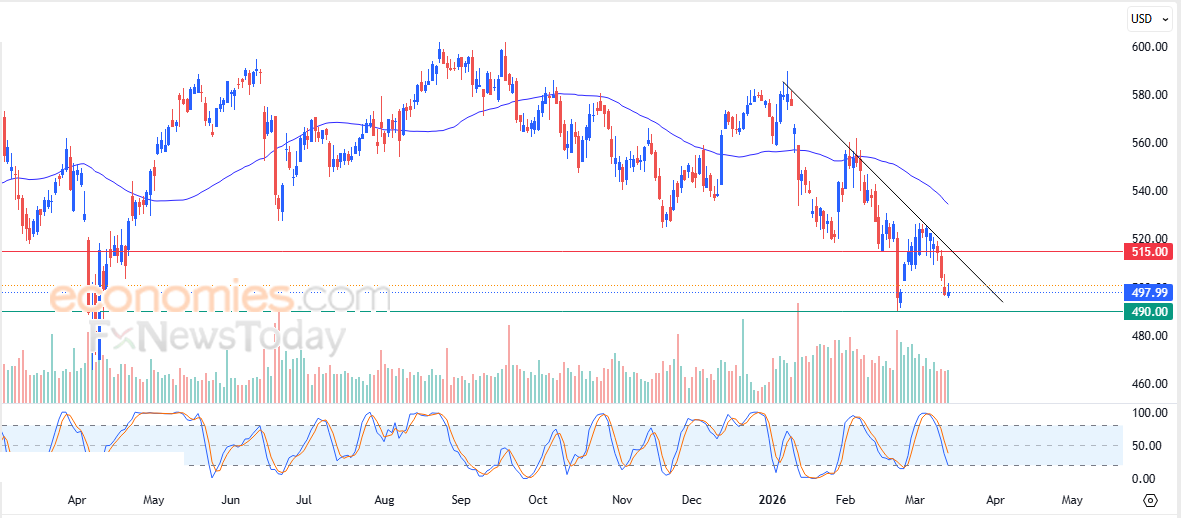 Portanto, esperamos que o preço das ações caia durante as próximas sessões de negociação, desde que a resistência em US$ 515,00 permaneça intacta, visando o nível de suporte em US$ 490,00.
