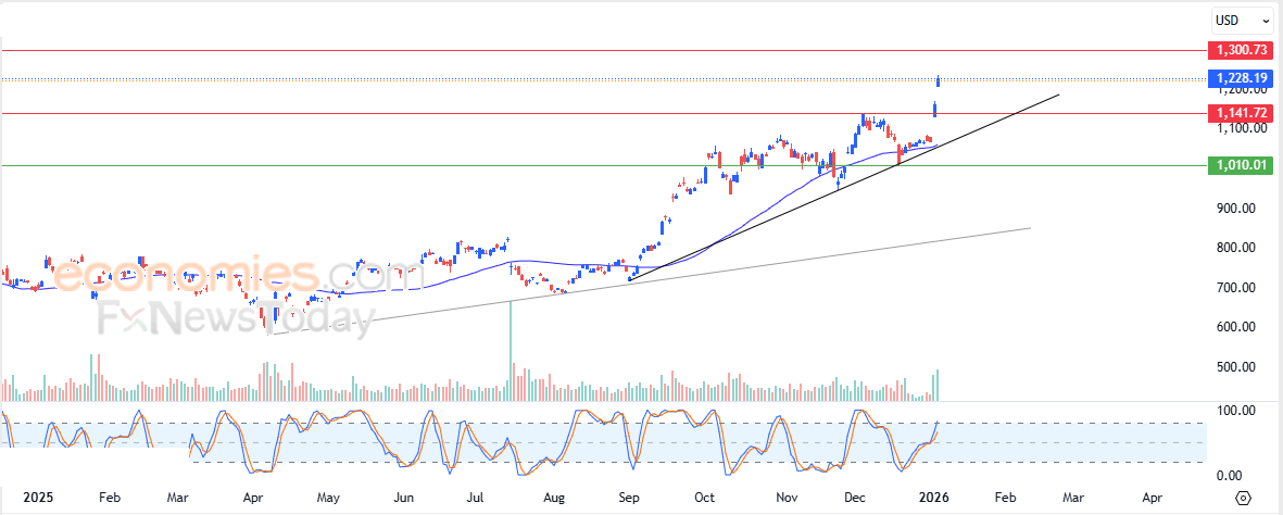 Portanto, esperamos que o preço das ações continue subindo nas próximas negociações, desde que se mantenha estável acima do nível de US$ 1.141,70, visando a primeira resistência em US$ 1.300.