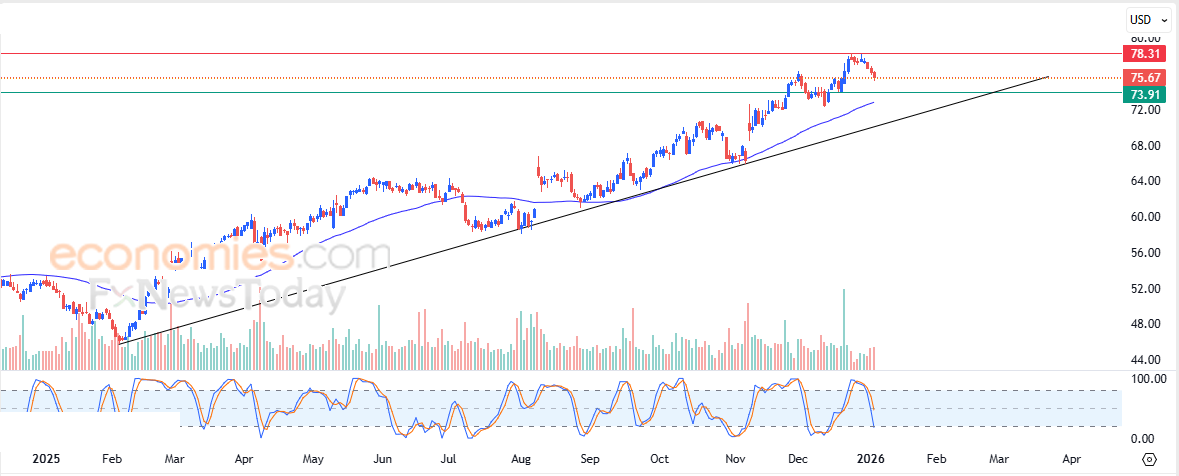 Portanto, esperamos que o preço das ações suba nas próximas negociações, desde que o nível de suporte de US$ 73,90 se mantenha, visando o nível de resistência de US$ 78,30.