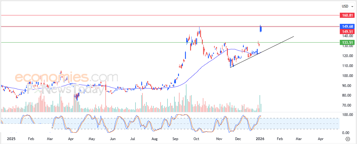 Portanto, esperamos que o preço das ações suba nas próximas negociações, mas somente se primeiro conseguir romper o nível de resistência de US$ 149,50, visando a próxima resistência em US$ 160,80.